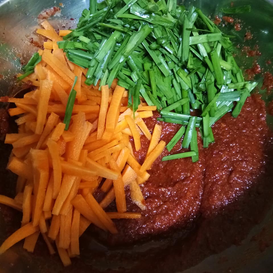 10. Selepas tu boleh campur daun kucai dan carrot. Gaul-gaul manja.