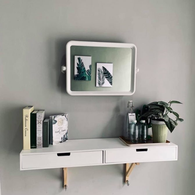 Cermin tu saya guna cermin untuk tandas, sebab nak jimat space tak nak cermin besar (mahal). Since cermin ni boleh adjust in certain degree, jadi nampak dari kepala ke kaki hehehe!